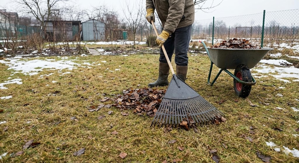 - Usuwaj liście: Jeśli jesienią nie udało Ci się sprzątnąć wszystkich liści, zrób to w suchy, bezmroźny dzień. Gnijące pod śniegiem liście to idealna pożywka dla grzybów.